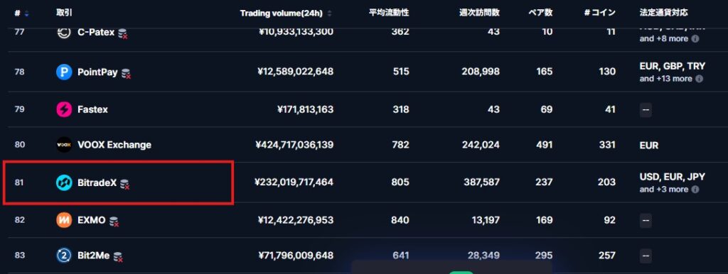 これは世界最大の取引所であるバイナンスとほぼ同水準であり、2026年3月時点ではコインマーケットキャップで世界トップ100位以内にランクインしています。